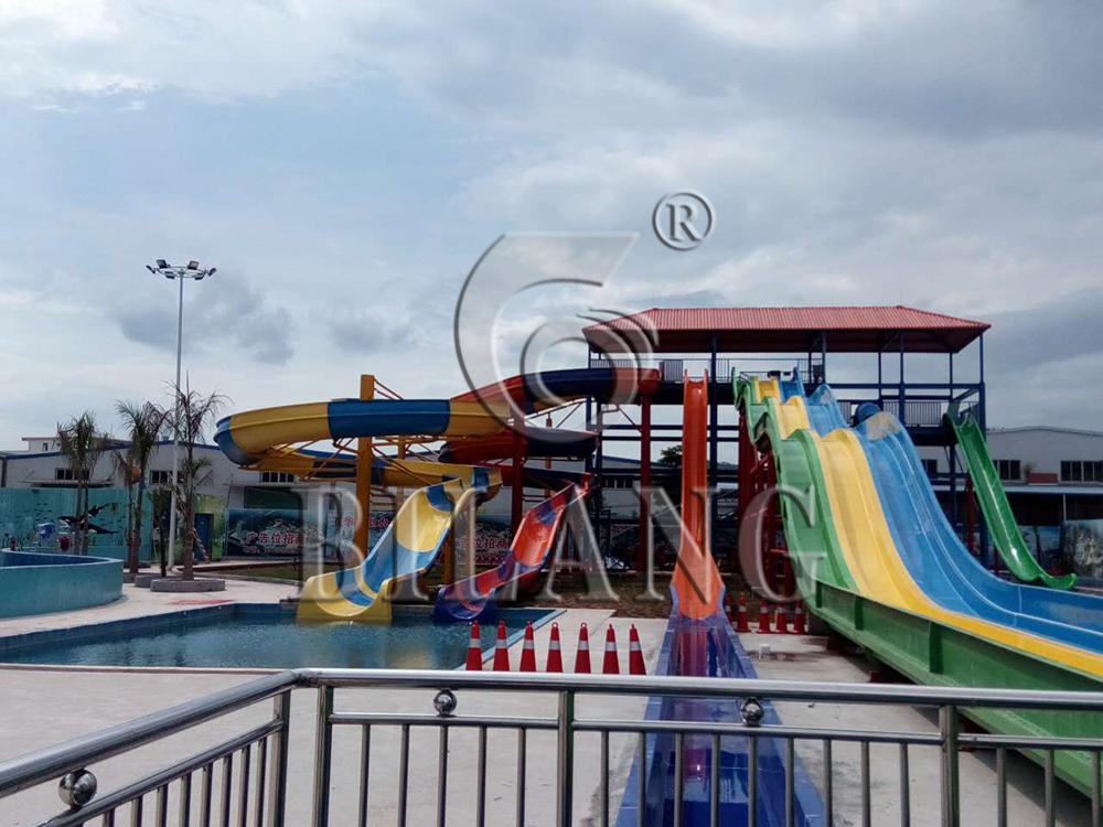 将滑梯合理地组合可以充分利用水上乐园场地,节省土建和平台搭建的成本,同时在组合水上乐园运营的过程中,对游客流向的管理将会会更加容易掌控。