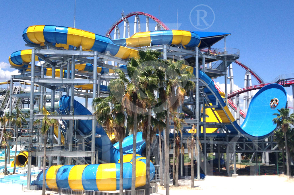 家庭大滑板和魔鬼鱼滑板组合把浮筏的经典感受推向极至。瞬间形成的高空坠落的惯性把乘客抛向家庭大滑板的制高点,给游客带来一飞冲天的感觉。瞬息之间,快速下滑,冲进魔鬼鱼滑板的湍流中,充分享受急流带来的震荡。然后坠入幽暗的减速筒,给游客营造出惊心动魄,流连忘返的感觉。 最原始最强烈的感官刺激和享受的融合
